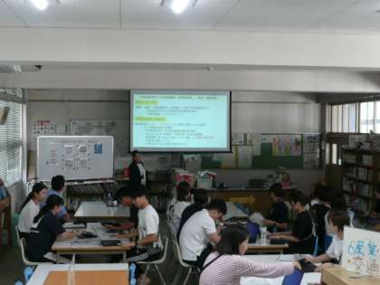 英語の研究授業に引き続き、放課後は外国語(英語)指導についての校内研修をおこないました。研究授業に引き続き、若手教員のメンター研修も兼ねて、教育委員会の英語担当の先生に講師としてご指導いただきました。