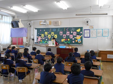 名前を呼ばれた時の返事の仕方やロッカーの使い方、アレルギーに関する紙芝居などを見ました。
