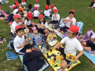 お待ちかねのお弁当タイムです!外でたべるお弁当は格別においしいですね!!