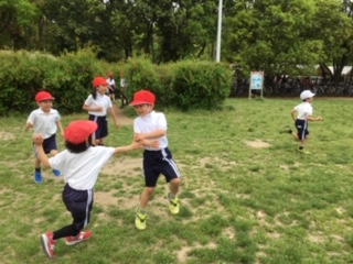 おいしいお弁当とおやつをおなかいっぱい食べた後は、スマイル班で、仲良く楽しく遊んでいます。