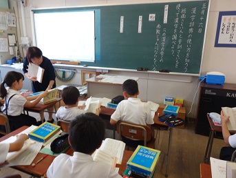 5月16日(木)2時間目に4年の国語科「漢字辞典の使い方を知ろう」の研究授業が行われました。習熟度別少人数学習で「たくさん調べたいコース」「標準コース」「先生と一緒に調べるコース」に分かれ、授業が行われました。今日は特に総画索引と音訓索引を使っての漢字の調べ方を学びました。部首索引も含め、どんな時にどの索引がより使いやすいかも話し合いました。