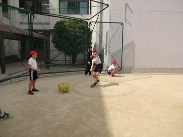 5月17日(金)5年生が来週行う体力テストのソフトボール投げの練習をしていました。