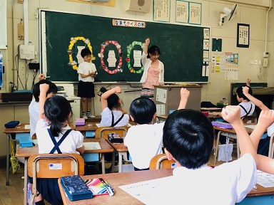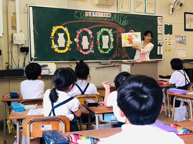 6月4日(火)1年生が海老江西小学校の栄養教諭の先生から食育指導を受けていました。