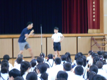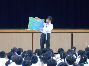 その後、生活指導の先生から、廊下の歩行の仕方について児童と一緒に実技入りのお話がありました。