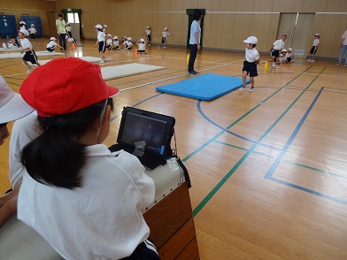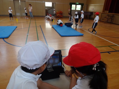 そして、自分の動きを終わった後に素早くタブレットで見て、上手にできたか確認していました。