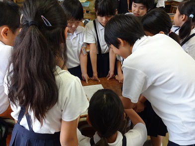ゲームのルールを決めたり、役割分担したり、実際にゲームを試したり、1〜6年生までが一緒に集まり、仲よく相談をしていました。