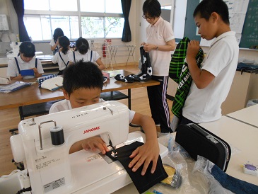 5年生から使っている針やミシンですが、巧みに扱うのはなかなか難しそうです。