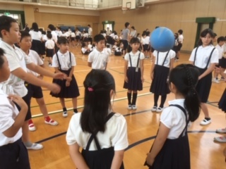 児童集会「名前をよんでボールキャッチ」