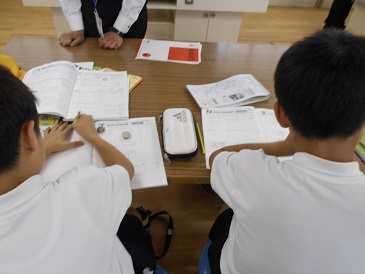 子どもたち2人に、講師の方が1人かかわる感じで、どちらも真剣モードで算数に取り組んでいました。