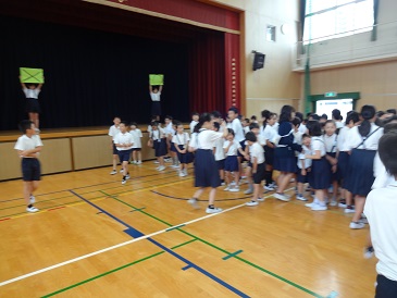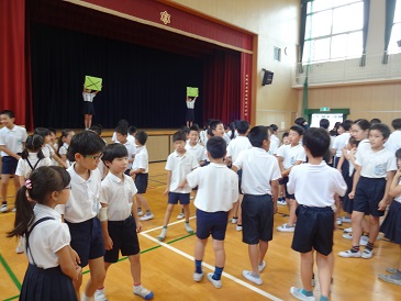 7月4日(木)朝の児童集会は、「○×クイズ」でした。