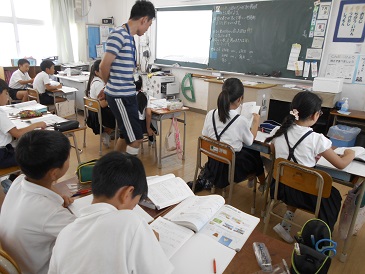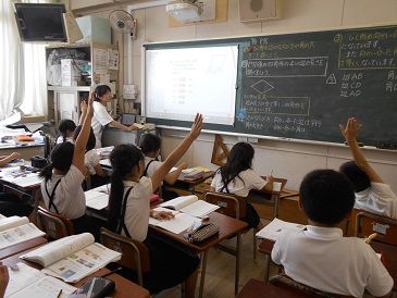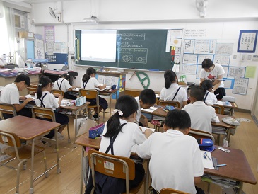 7月8日(月)4年生が算数科の時間に3つのグループに分かれて、習熟度別少人数学習に取り組んでいました。