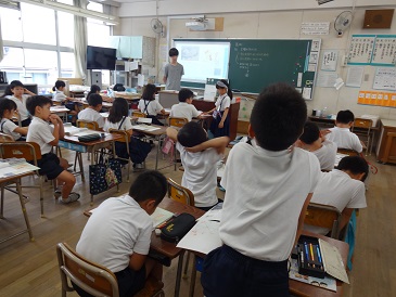 7月11日(木)3年生が社会科「工場の多いところ」の学習をしていました。大阪市の地図をもとに工場の数や人、種類を調べていました。