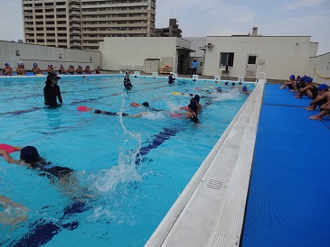 7月12日(金)朝から晴れ間が広がり、プールでの体育学習が行われました。
