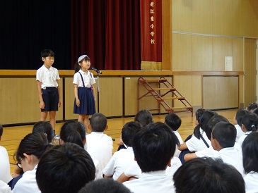 続いて、3年生の児童2名が1学期に頑張ったことをそれぞれ発表しました。