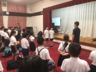 少し霧雨の降る天候で、開舎式はホテルの大広間で行いました。素晴らしい児童代表のあいさつもありました。