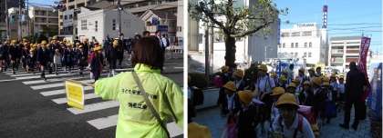 地域の方による登校見守りや、PTAの方による健全育成あいさつ運動がありました。