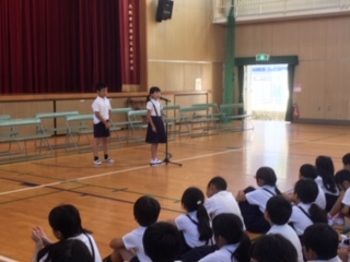 また、2学期の目標を、4年生の2名が児童を代表して発表しました。