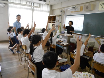8月30日(金)5年生もC-NETのMr.Aと一緒に外国語活動をしました。