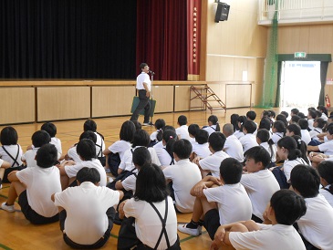 次に、生活指導の先生から登下校時の工事現場の通り方について、周りの安全に十分気をつけて歩くように話がありました。
