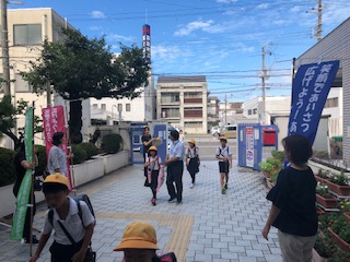 9月10日(火)今日は2学期最初の健全あいさつ運動でした。先週の児童会によるあいさつ運動に引き続き、子ども達は元気に「おはようございます!」と先生方やPTAの方々にあいさつをしていました。