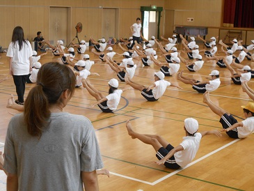 9月11日(水)5・6年生が運動会の団体演技の練習をしていました。