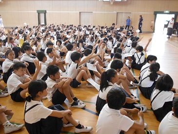 9月12日(木)今朝の児童集会は、「運動会の歌・校歌」の練習でした。