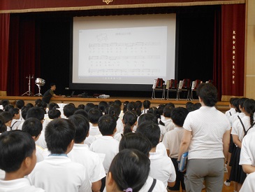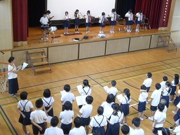 最後に、音楽クラブの子ども達の演奏で校歌を歌いました。当日も開会式で演奏し、歌うことになっています。