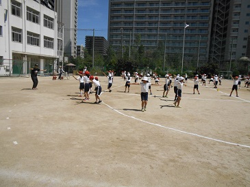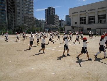 いいお天気のもと、運動場で一生懸命踊っていました。