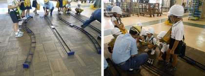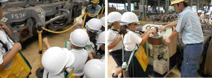 基地では、電車の動く仕組みや車両の工夫、運転の仕方などを係の方から丁寧に説明をしていただきました。ふだんできない楽しい体験ができ、最後に見学の記念にお土産ももらいました。車両基地の皆様ありがとうございました。
