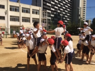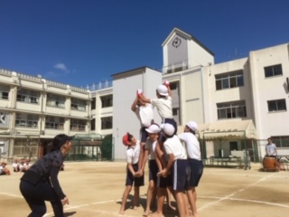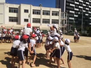 5・6年生が団体競技「令和の陣」(騎馬戦)の練習をしていました。