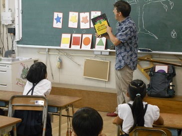 1学期にも教わったマッツ先生に来てもらい、色や形に関する単語について正しい発音を学びました。最後に、楽しい絵本も読んでもらいました。