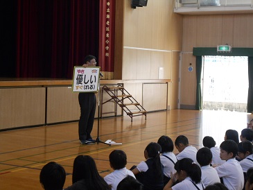 10月7日(月)今日の児童朝会は「優しい」という字について話しました。