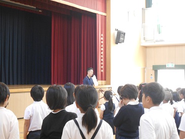 また、生活指導の先生から今月の目標「思いやりの心をもって過ごしましょう」について話がありました。