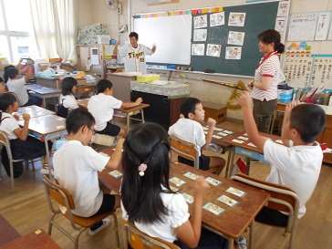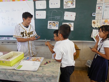 講師のMattoさんにスポーツの競技名の英語の発音を教わりながら、ゲームをして楽しみました。