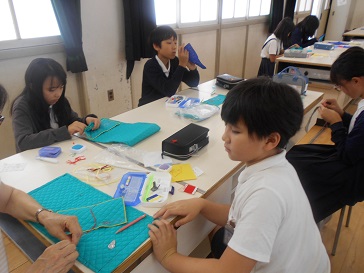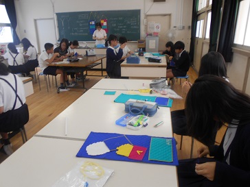 10月11日(金)6年生が家庭科で「楽しいソーイング」の学習をしていました。