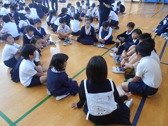 10月17日(木)今日の児童集会は、来週の大阪城公園への全校遠足でのスマイル班活動で、班ごとにどんな遊びをするかを相談しました。「おにごっこ」や「だるまさんがころんだ」、「けいどろ」など楽しそうな遊びが決められていました。25日(金)当日の活動が楽しみです。