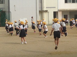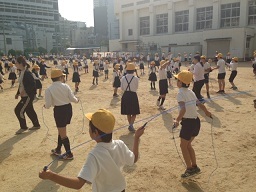 火・木曜日は2・4・6年生、水・金曜日は1・3・5年生が運動場に集まってなわとび運動に挑戦します。