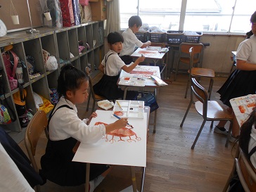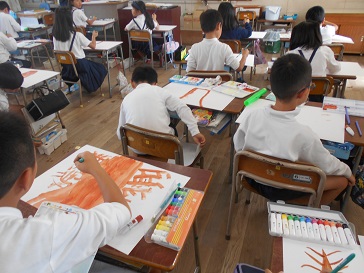 10月23日(水)3年生が図画工作科で、物語を絵に表す学習をしていました。