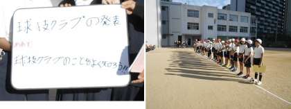 児童集会 「球技クラブの発表」