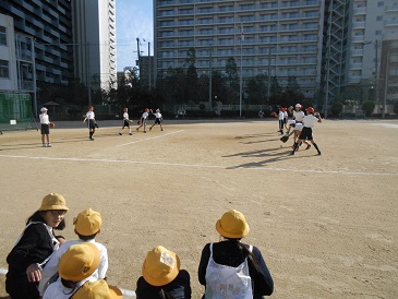11月7日(木)今日の児童集会は、運動場で「球技クラブの発表」でした。球技クラブの4・5・6年生のメンバーが普段している活動の中から、サッカーやハンドボール、ソフトボールの実技を全校児童に見せました。実技が終わると温かい拍手が起きました。