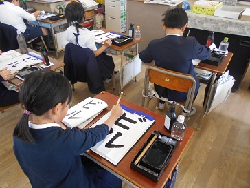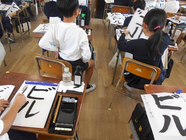 11月8日(金)3年生が書写の時間に、毛筆で「ビル」という字を学習していました。