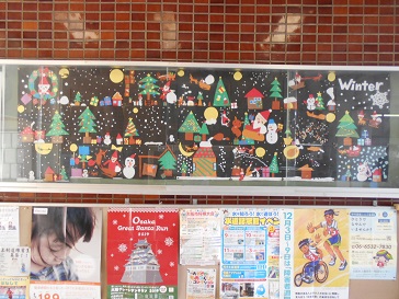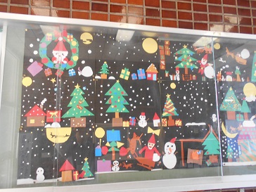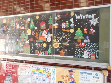 学校の玄関の掲示板に4年生が作った12月の掲示物が貼りだされました。