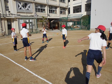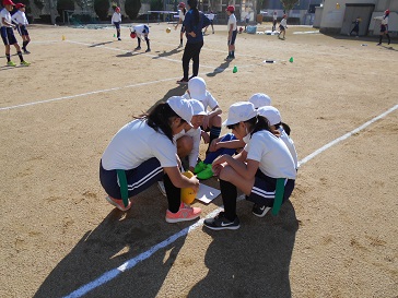 12月3日(火)5年生が体育科「タグフットボール」の学習をしていました。