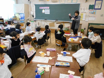 12月4日(水)1年生が歯垢染め出しの学習をしました。