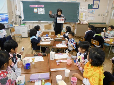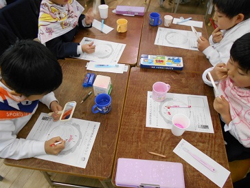 正しく歯磨きができているか、磨き残しで歯垢が溜まっているところがないか、先生の指導のもと、鏡で調べ、赤ペンでチェックしていました。