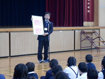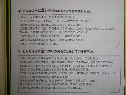 アンケートは週間を通し、思いやりの気持ちがより一層深まったことを知らせ、その具体的な様子をお便りから選んで伝えました。また、今後も思いやりのある行動をとって温かい友達関係を築いてほしいと言いました。