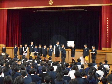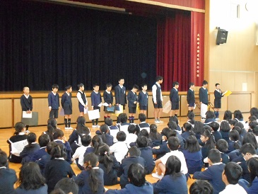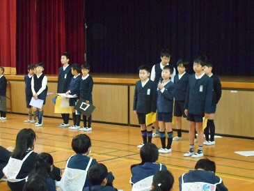 1月16日(木)朝の児童集会で、ゲームクラブの発表がありました。