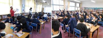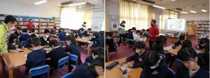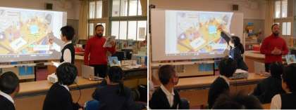 1月17日(金)5年生が外国語活動の学習を、担任の先生と英語指導員のMr.Aと一緒にしていました。