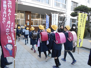 寒空の中、朝からPTAの方々に、子ども達に「おはよう!」と声をかけていただきました。それに応え、子ども達からも「おはようございます!」と返していました。