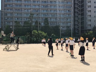 子ども達の心身の様子やコロナ感染対策を十分に考慮しながら、気分転換や軽い運動ができるように、先生たちは休憩時間の活動も工夫をしています。運動場では、子ども達も先生もいきいき、楽しく体を動かす姿が見られました。5・6年生は「パプリカ」の曲に合わせ、久々にみんなでダンスをしていました。ここでも、もちろんソーシャルディスタンスは保たれています。